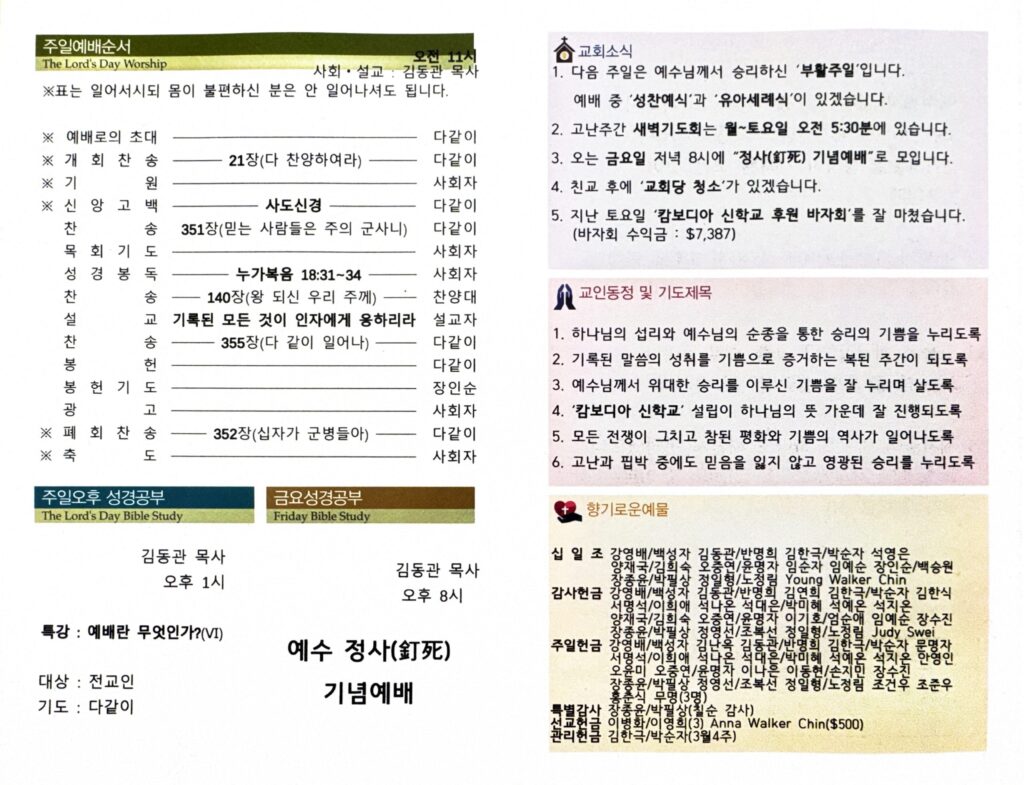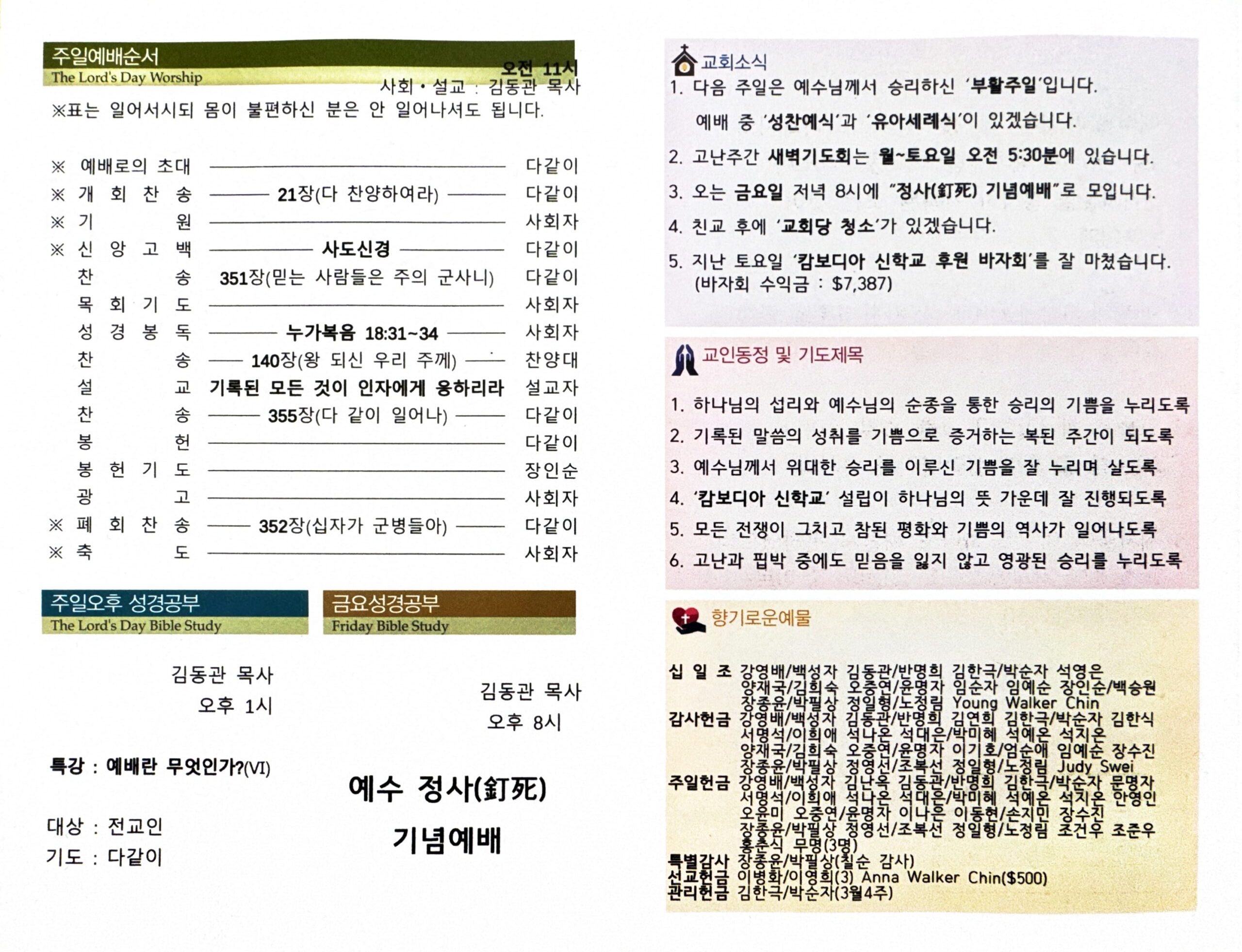 3월 29일 (주일 주보)